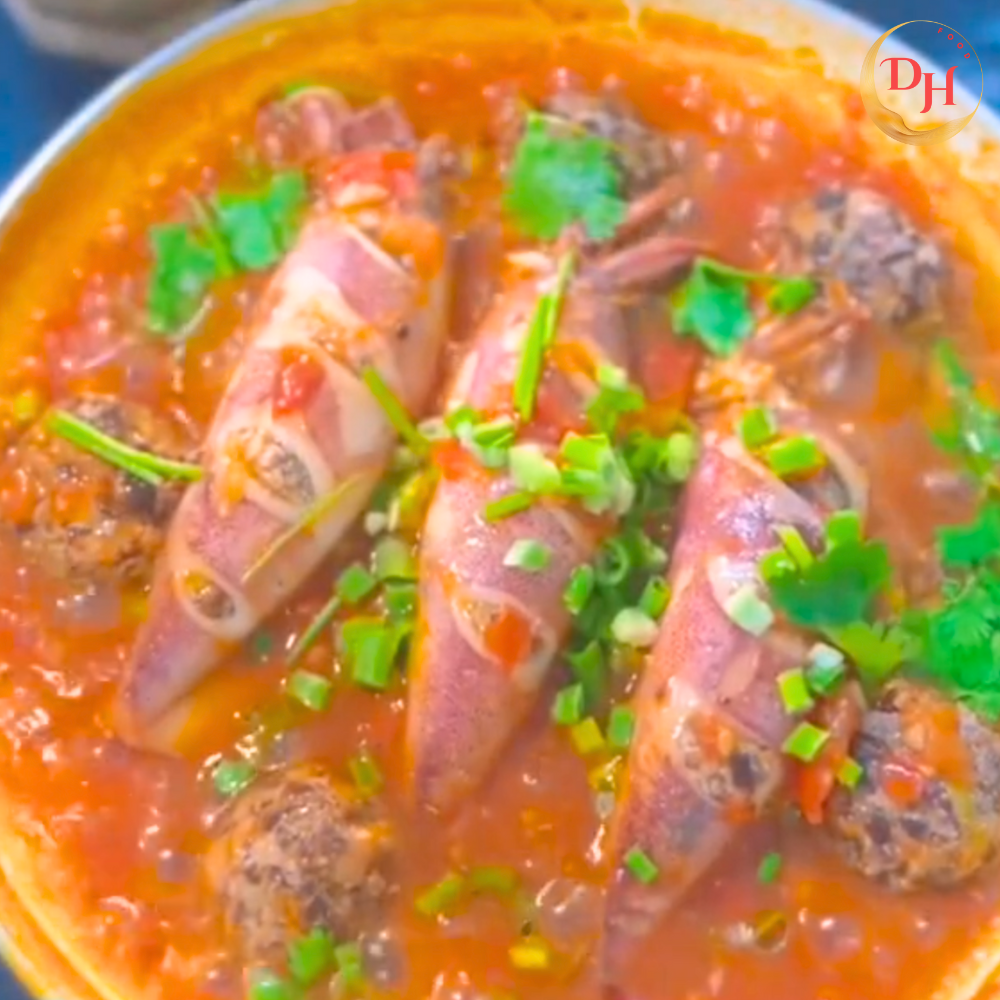 Mực trứng dồn thịt kho là một món ăn hội tụ đủ hương – sắc – vị, vừa thơm ngon đậm đà, vừa bổ dưỡng cho cả gia đình. Từng miếng mực căng tròn, giòn dai quyện với nhân thịt béo ngậy, khi kho lên lại thấm đều gia vị, tạo nên một món ăn khó cưỡng, chỉ cần dọn ra là cả nhà “hao cơm” ngay lập tức.